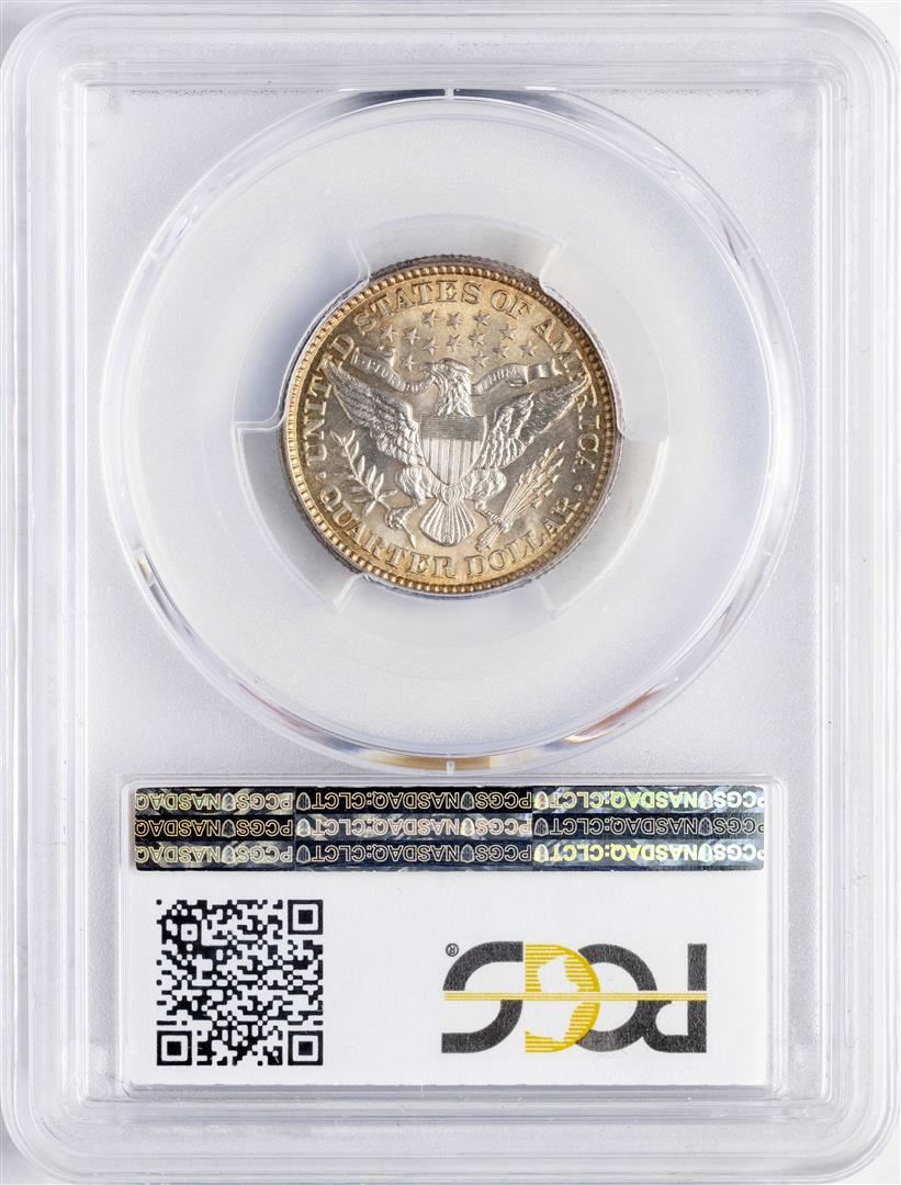 One 1892 Barber Quarter Coin PCGS MS63 Nice Toning. PCGS Graded.