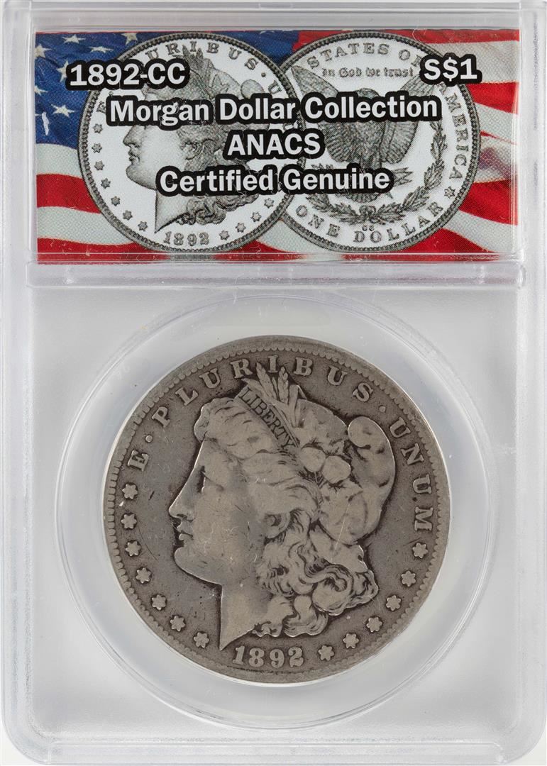 One 1892-CC $1 Morgan Silver Dollar Coin ANACS Certified Genuine. ANACS Certified.