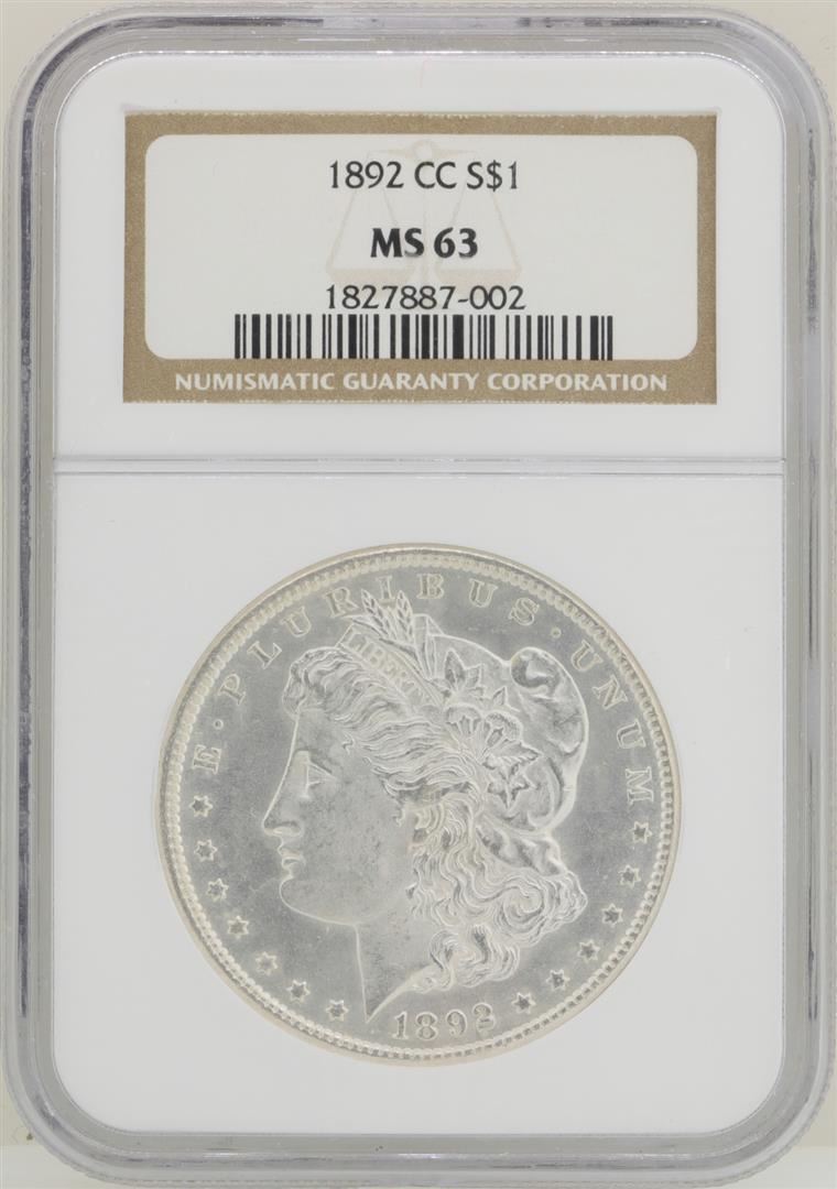 One 1892-CC $1 Morgan Silver Dollar Coin NGC MS63. NGC Certified.
