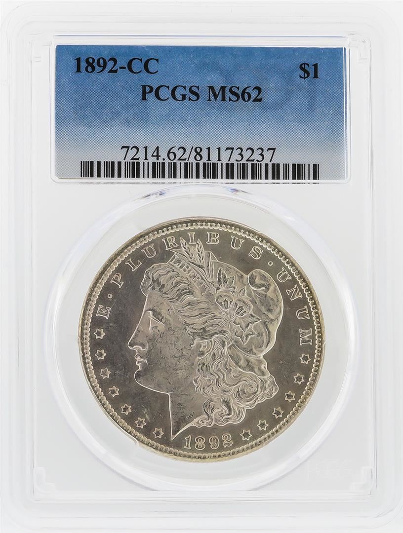 One 1892-CC $1 Morgan Silver Dollar Coin PCGS Graded MS62. PCGS Graded.