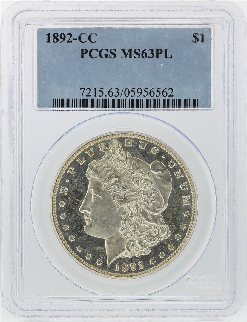 One 1892-CC $1 Morgan Silver Dollar Coin PCGS Graded MS63PL. PCGS Graded.