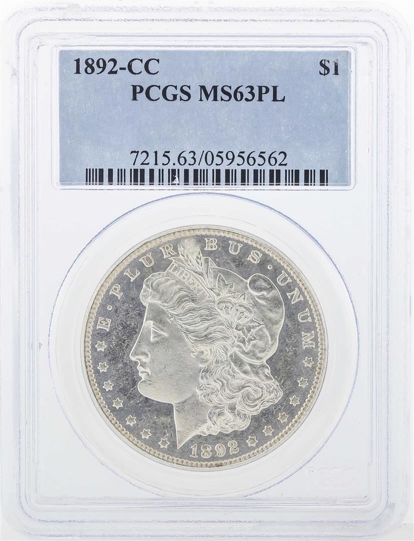 One 1892-CC $1 Morgan Silver Dollar Coin PCGS MS63PL. PCGS Graded.
