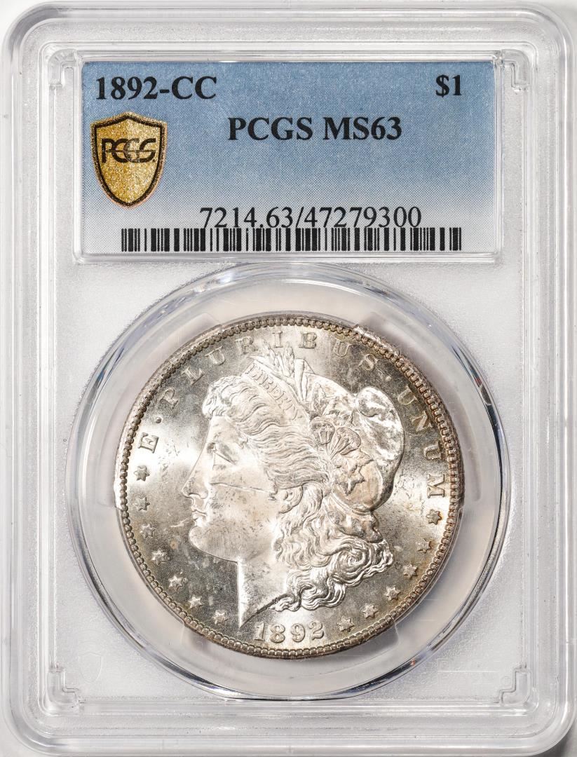 One 1892-CC $1 Morgan Silver Dollar Coin PCGS MS63. PCGS Graded.
