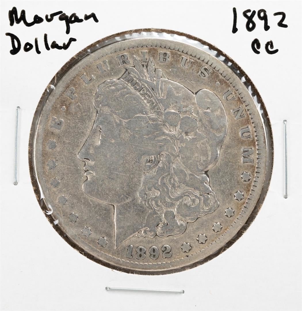 One 1892-CC $1 Morgan Silver Dollar Coin.
