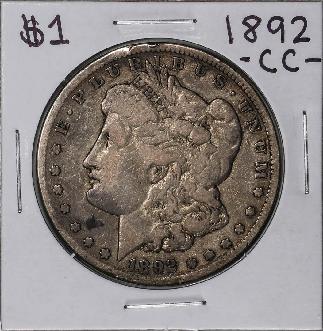 One 1892-CC $1 Morgan Silver Dollar Coin.