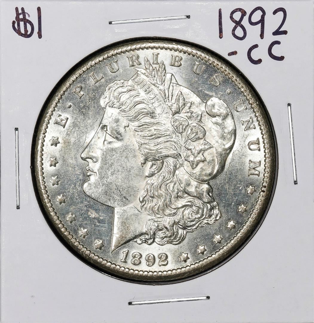One 1892-CC $1 Morgan Silver Dollar Coin.