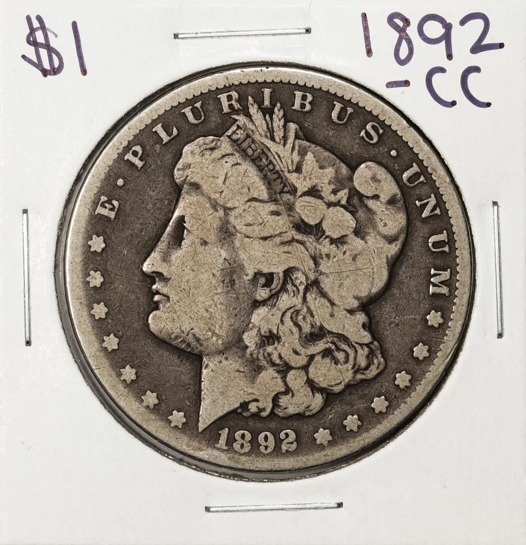 One 1892-CC $1 Morgan Silver Dollar Coin.