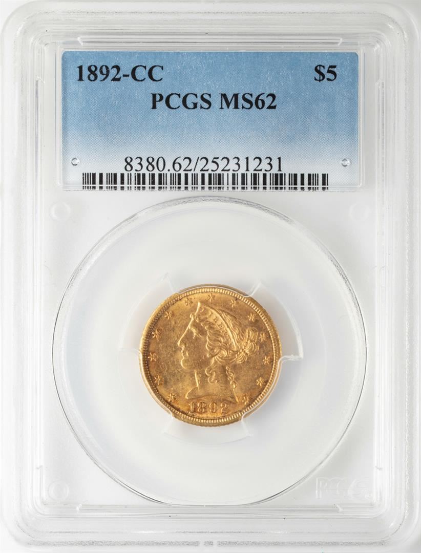 One 1892-CC $5 Liberty Head Half Eagle Gold Coin PCGS MS62. PCGS Graded.