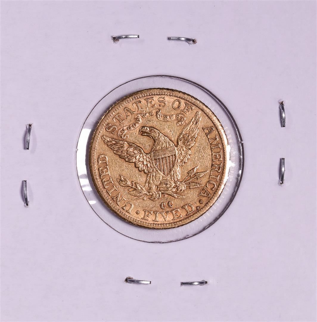 One 1892-CC $5 Liberty Head Half Eagle Gold Coin.