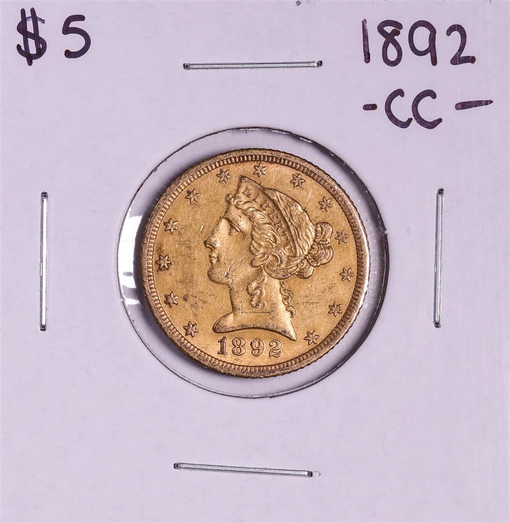 One 1892-CC $5 Liberty Head Half Eagle Gold Coin.