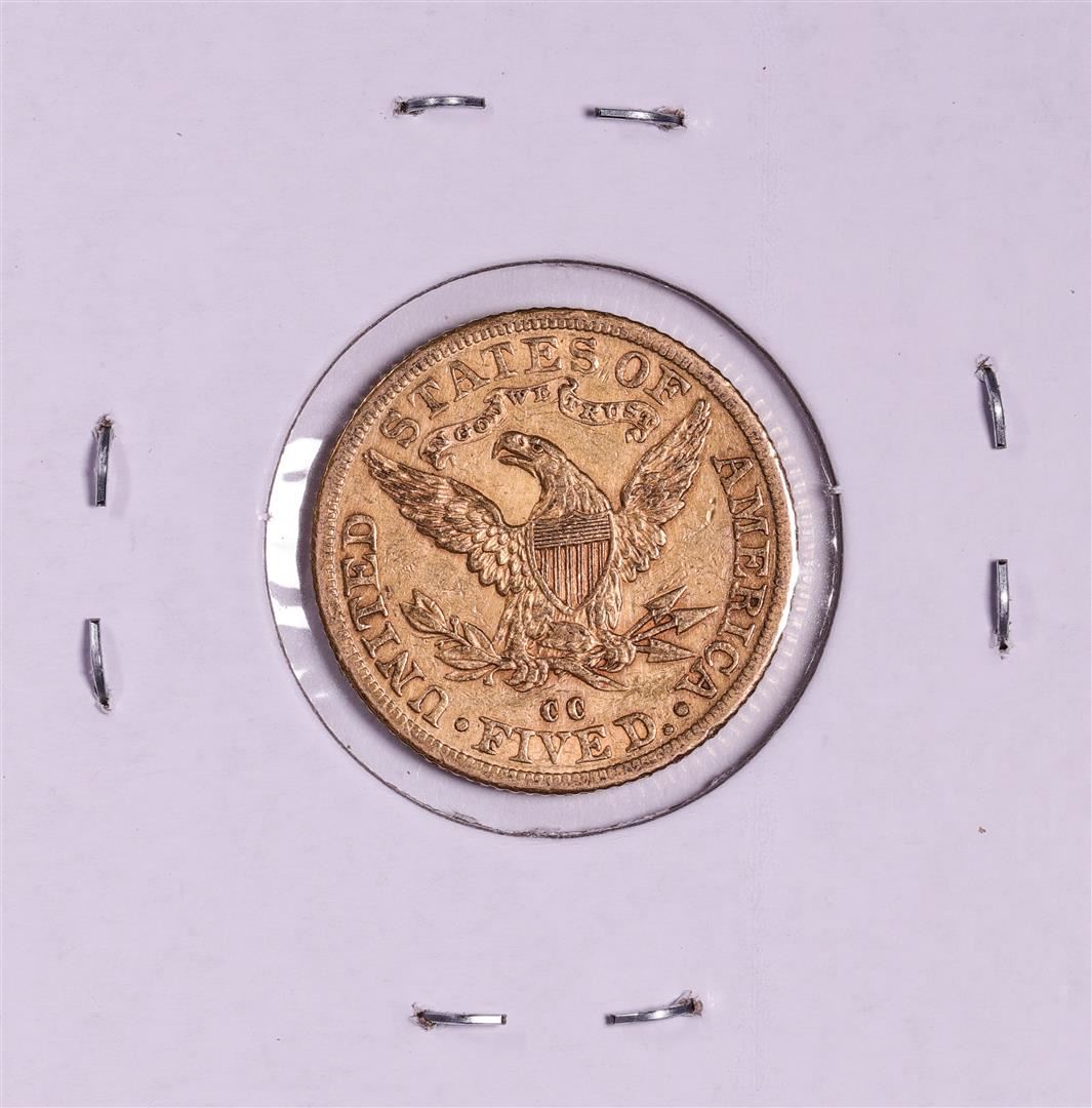One 1892-CC $5 Liberty Head Half Eagle Gold Coin.