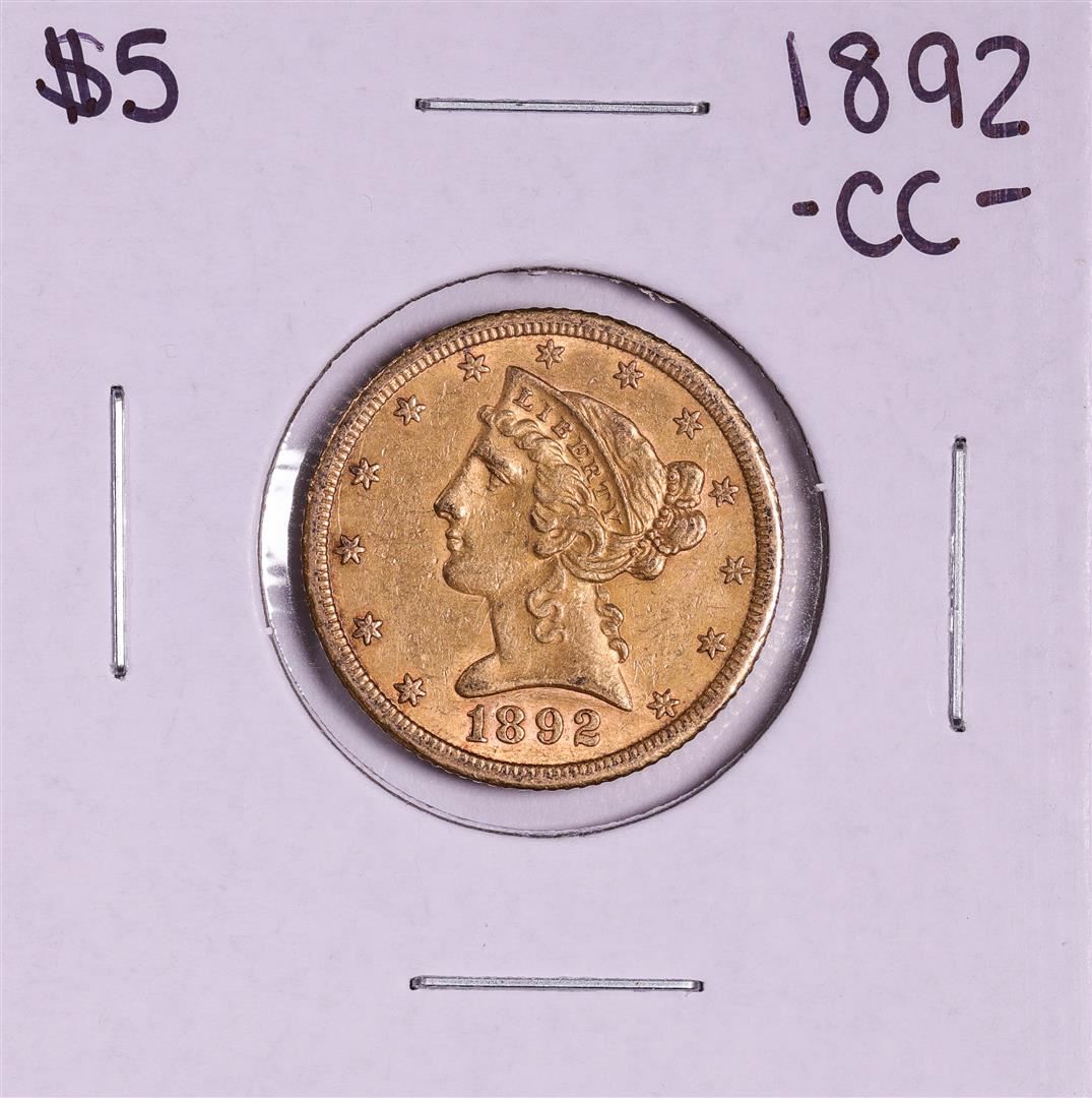 One 1892-CC $5 Liberty Head Half Eagle Gold Coin.