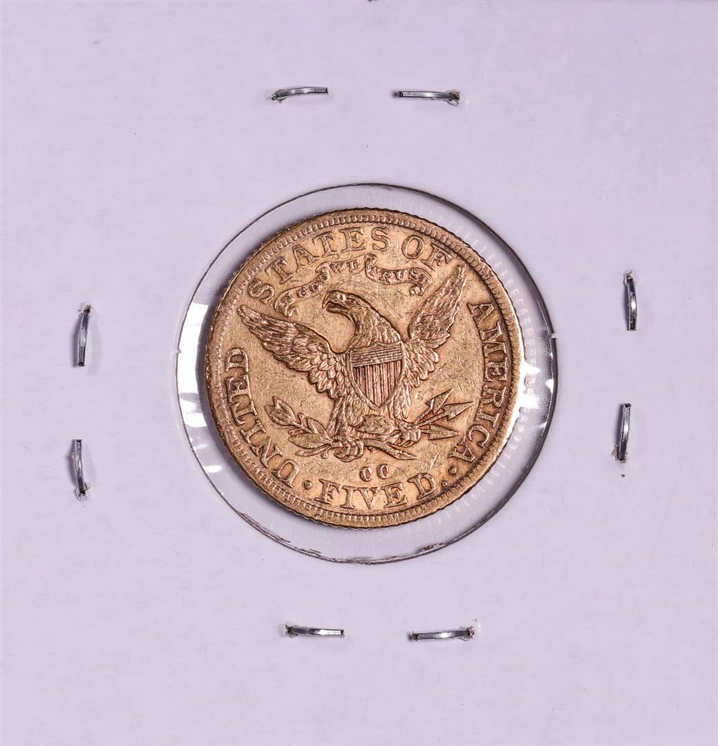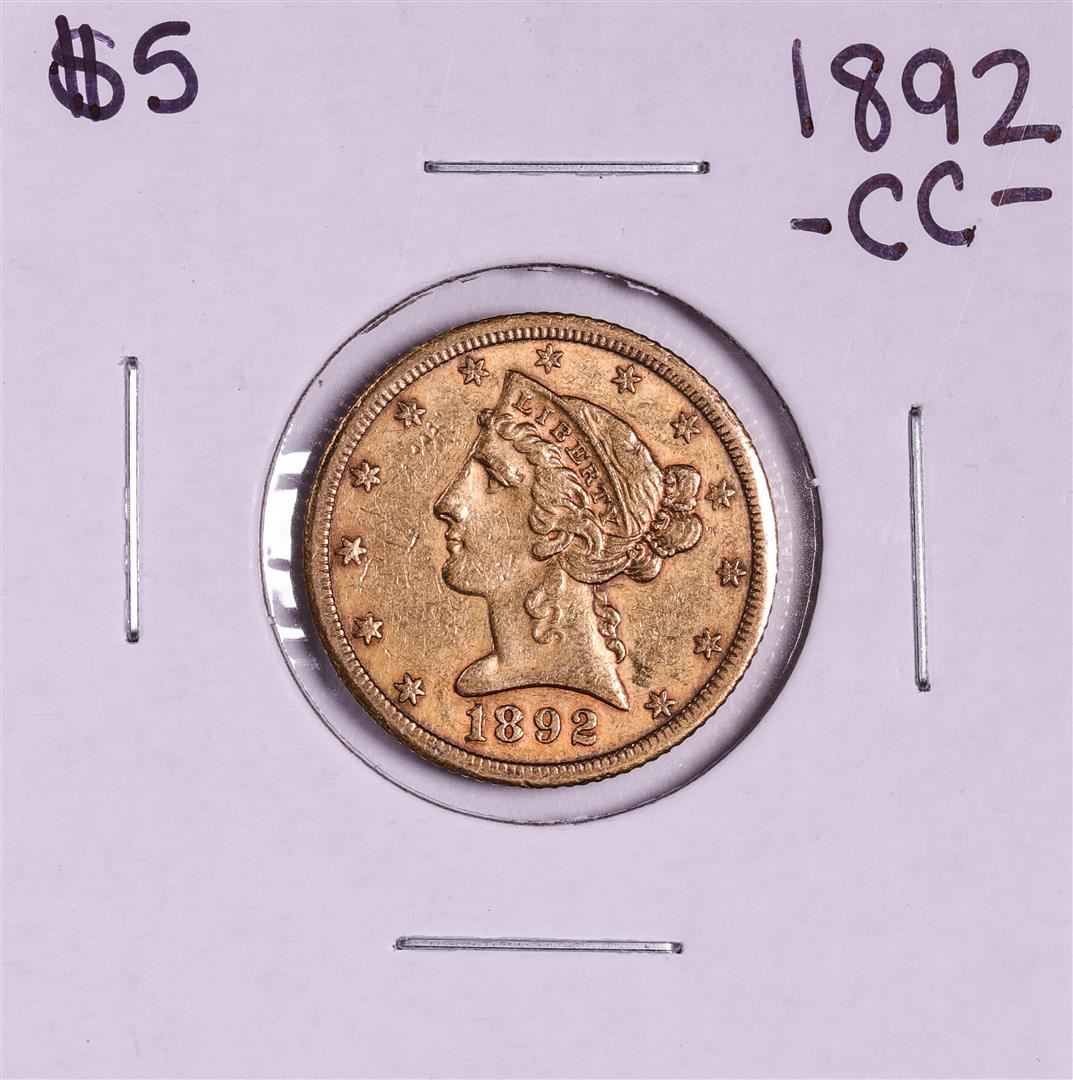 One 1892-CC $5 Liberty Head Half Eagle Gold Coin.