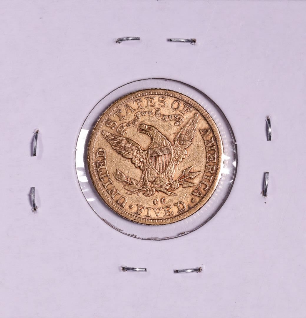 One 1892-CC $5 Liberty Head Half Eagle Gold Coin.