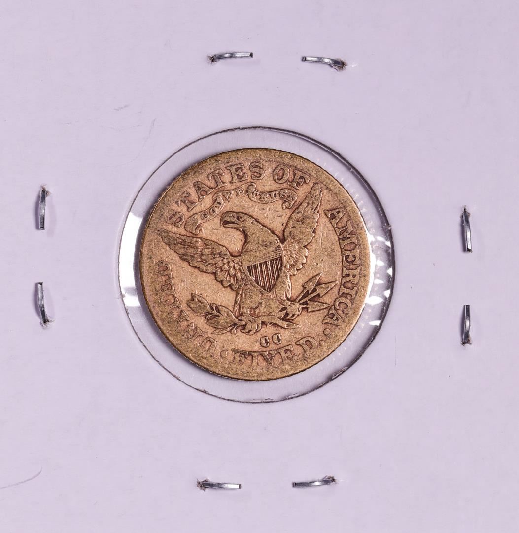 One 1892-CC $5 Liberty Head Half Eagle Gold Coin.