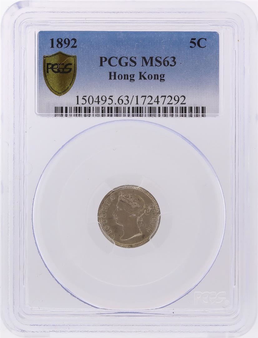 One 1892 Hong Kong 5 Cents Silver Coin PCGS Graded MS63. PCGS Graded.