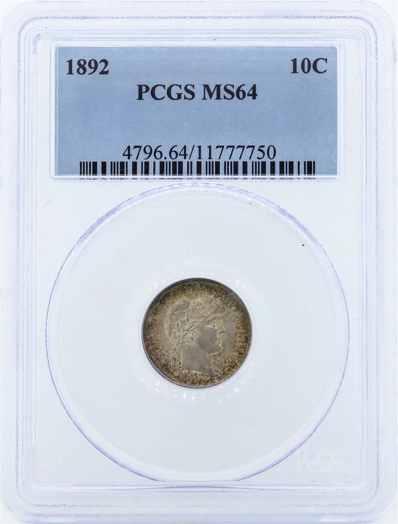 One 1892 Liberty Barber Head Dime PCGS MS64. PCGS Graded.