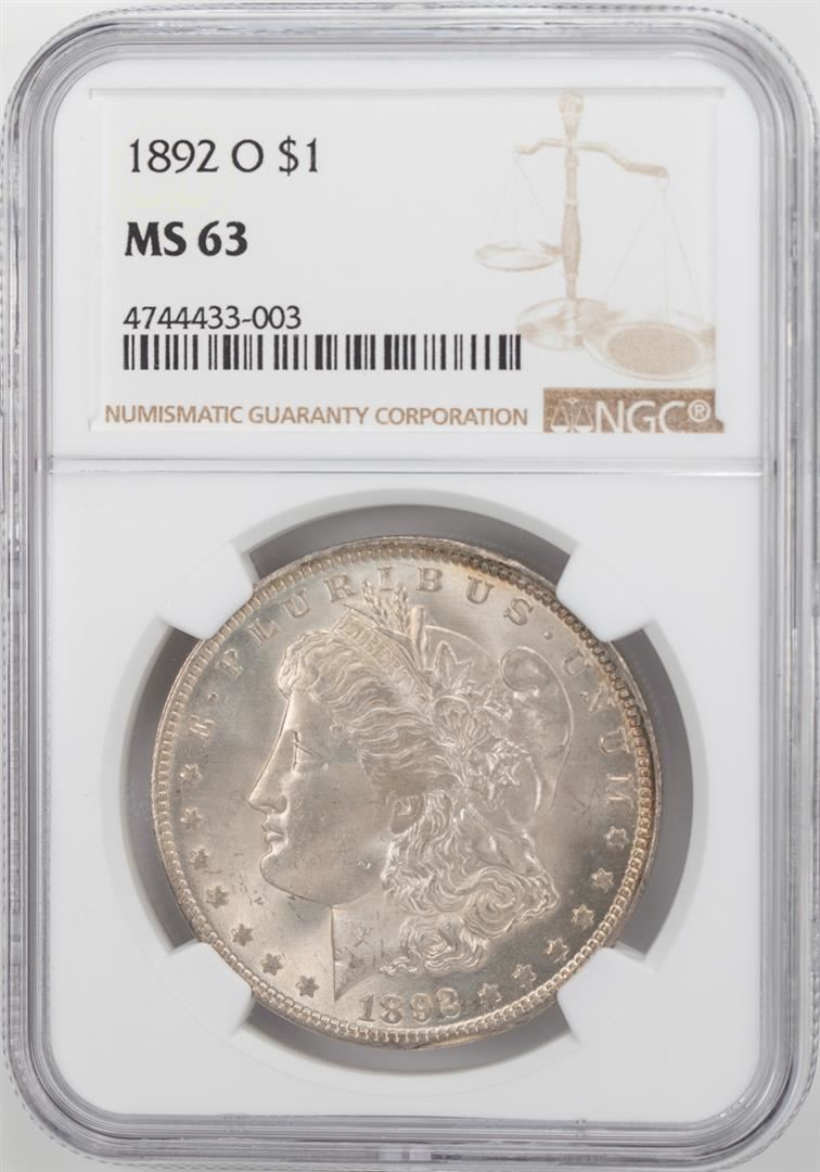 One 1892-O $1 Morgan Silver Dollar Coin NGC MS63. NGC Certified.