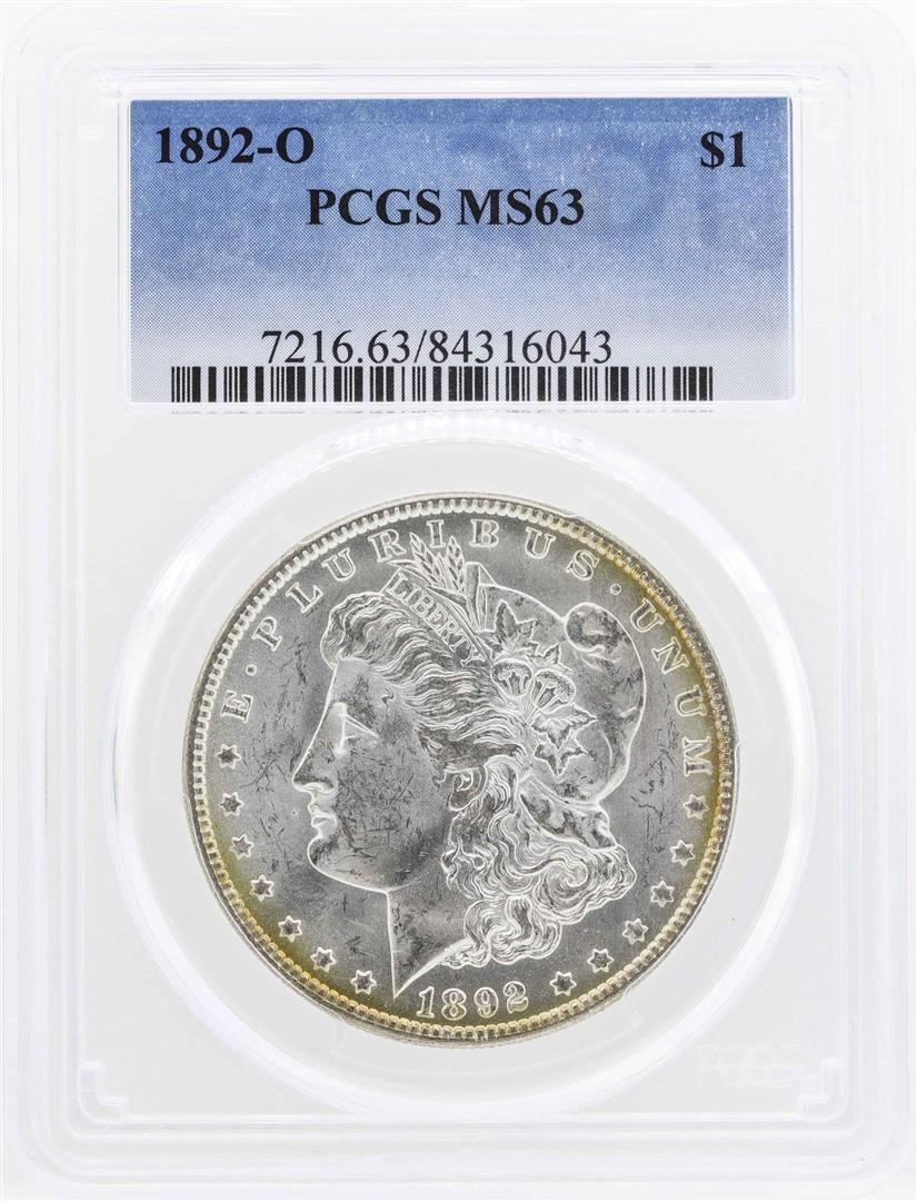 One 1892-O $1 Morgan Silver Dollar Coin PCGS MS63. PCGS Graded.