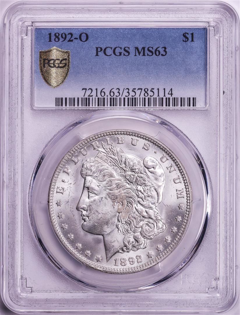 One 1892-O $1 Morgan Silver Dollar Coin PCGS MS63. PCGS Graded.