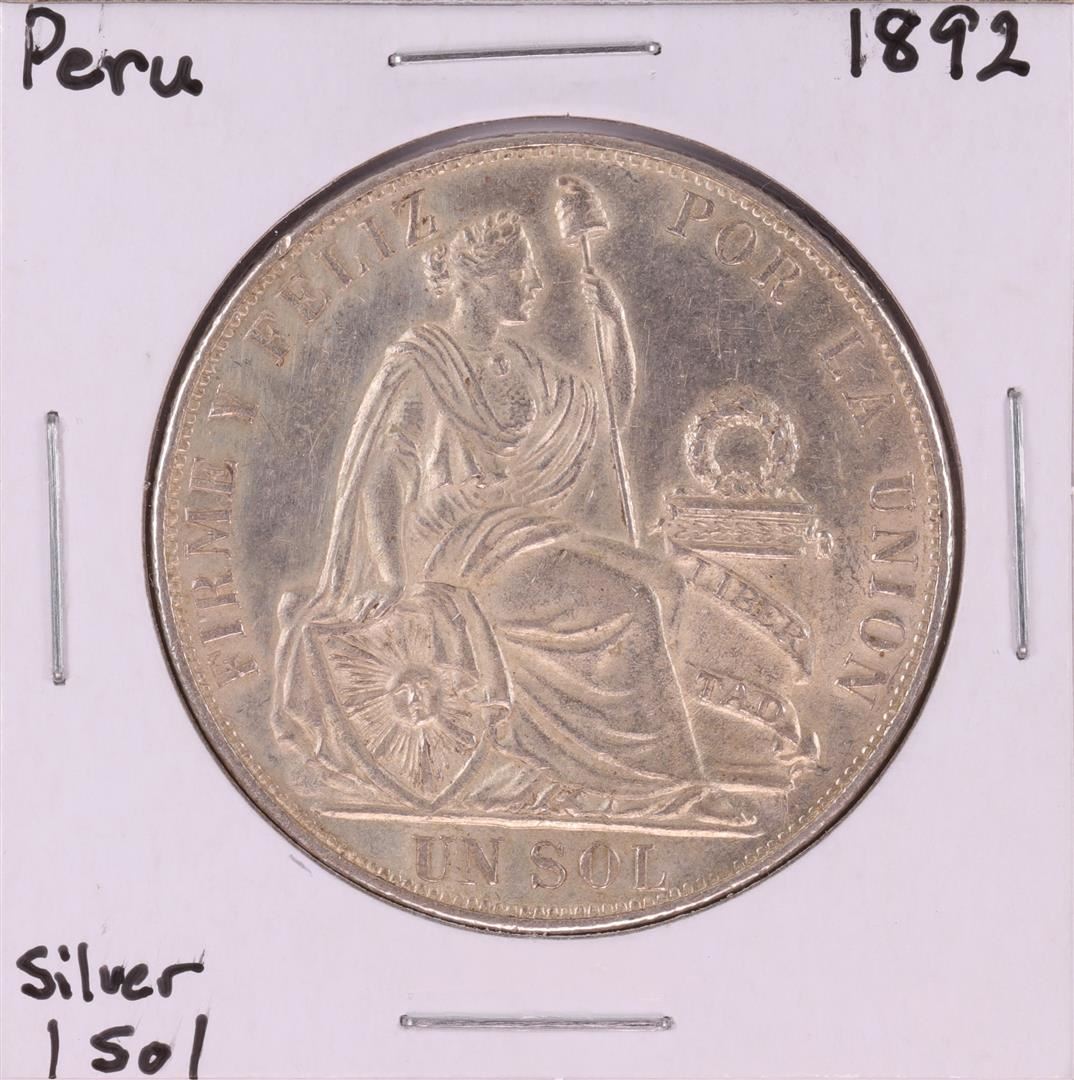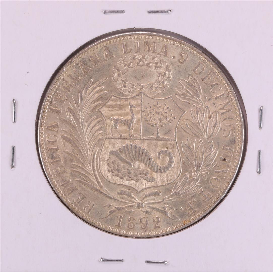One 1892 Peru Un Sol Silver Coin.