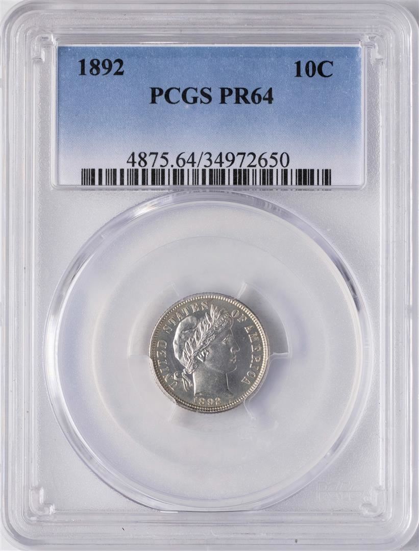 One 1892 Proof Barber Dime Coin PCGS PR64. PCGS Graded.