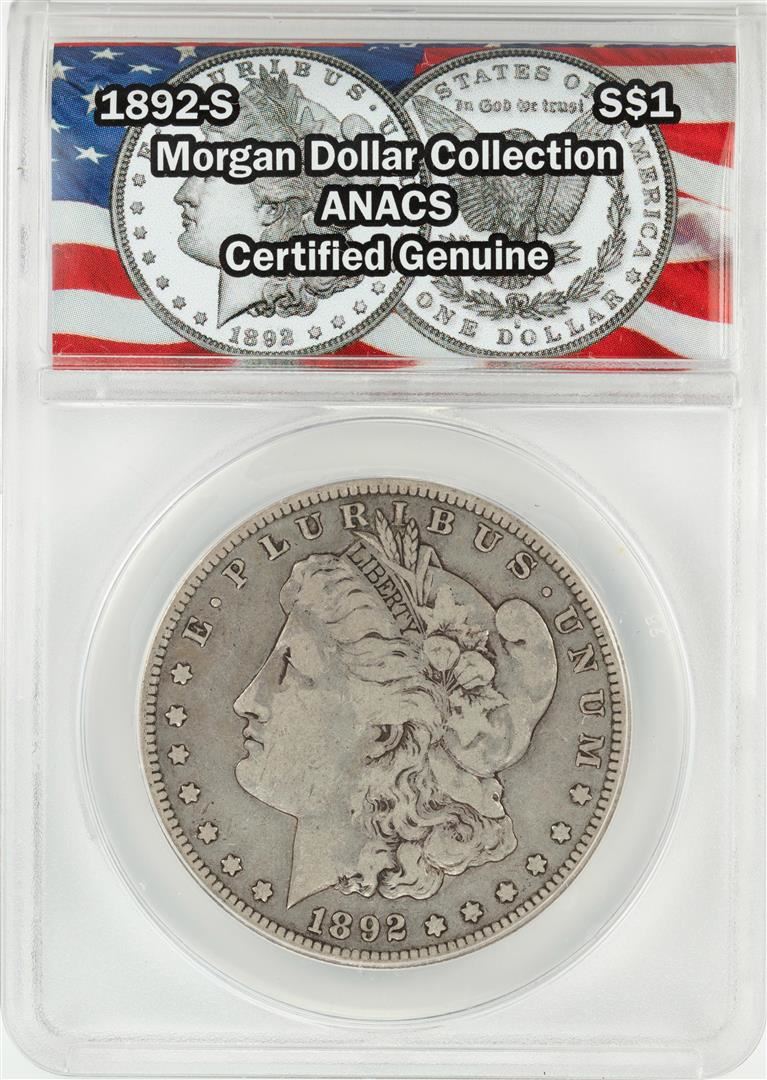 One 1892-S $1 Morgan Silver Dollar Coin ANACS Certified Genuine. ANACS Certified.
