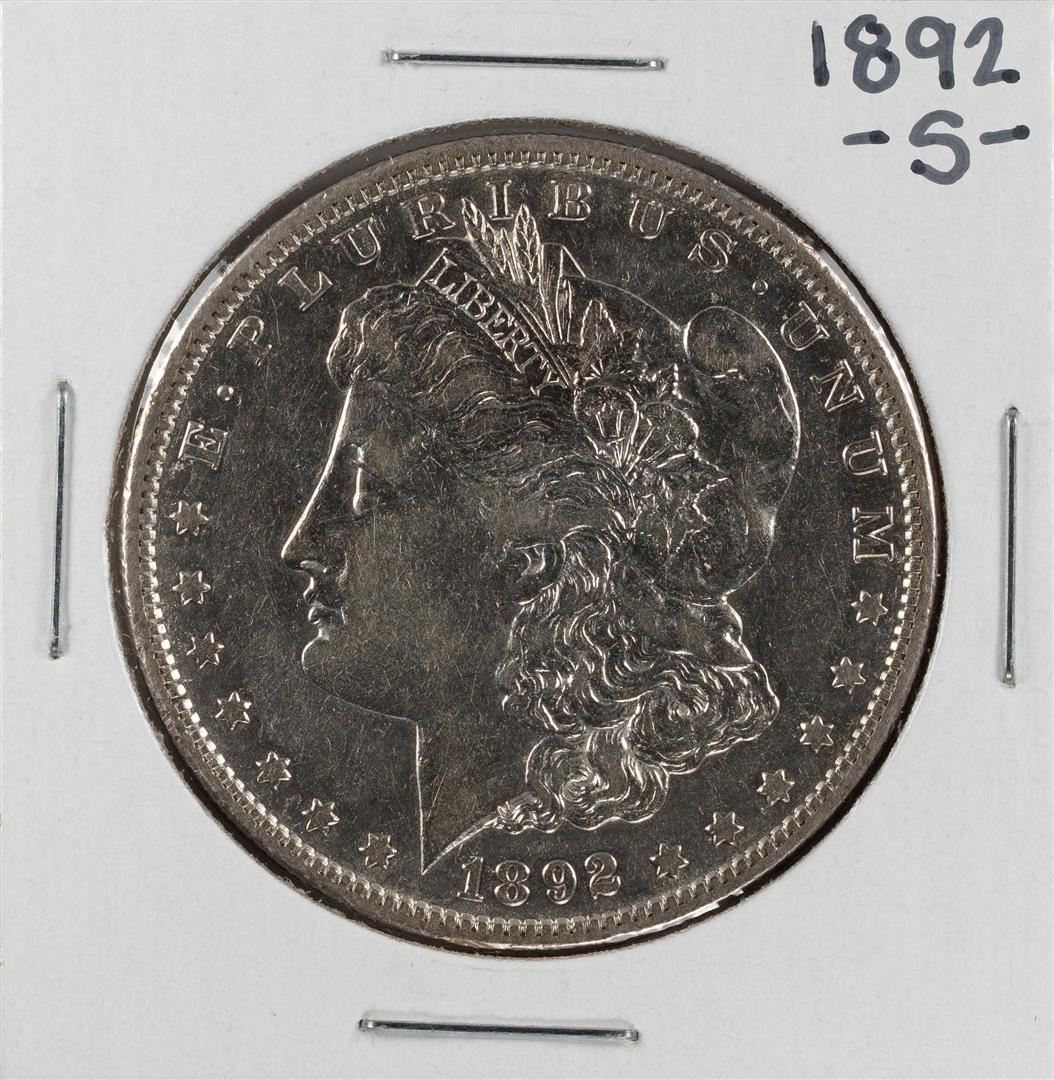 One 1892-S $1 Morgan Silver Dollar Coin.