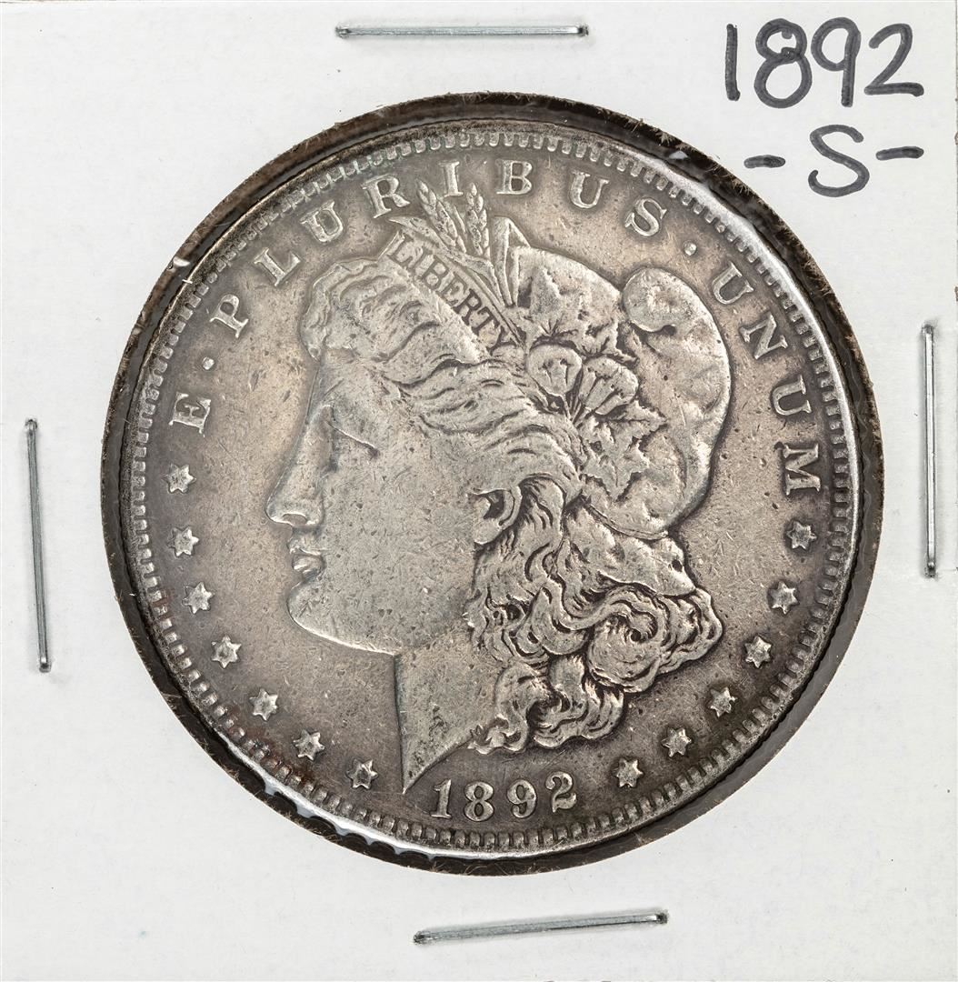 One 1892-S $1 Morgan Silver Dollar Coin.