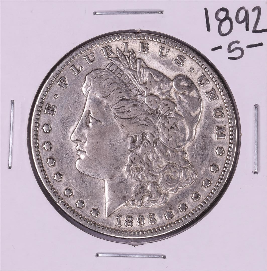 One 1892-S $1 Morgan Silver Dollar Coin.