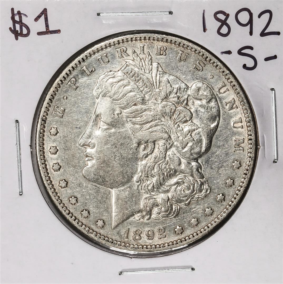 One 1892-S $1 Morgan Silver Dollar Coin.