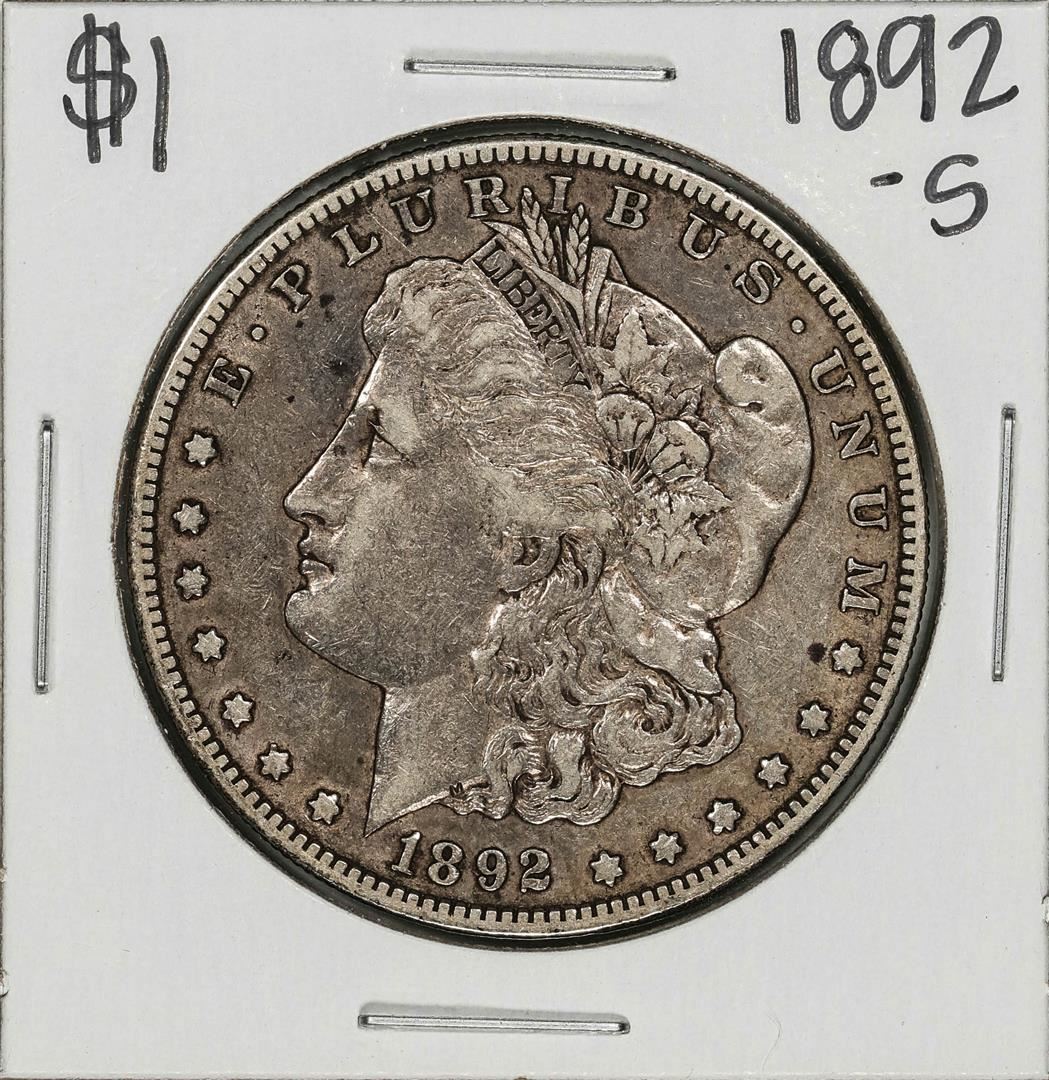 One 1892-S $1 Morgan Silver Dollar Coin.