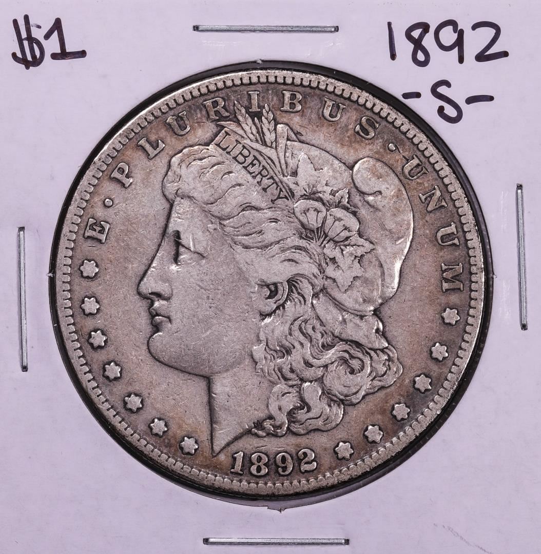 One 1892-S $1 Morgan Silver Dollar Coin.