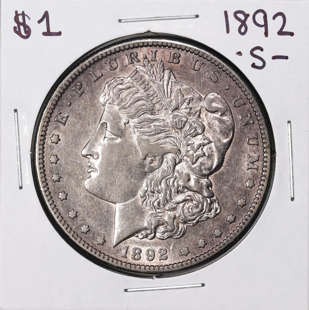One 1892-S $1 Morgan Silver Dollar Coin.