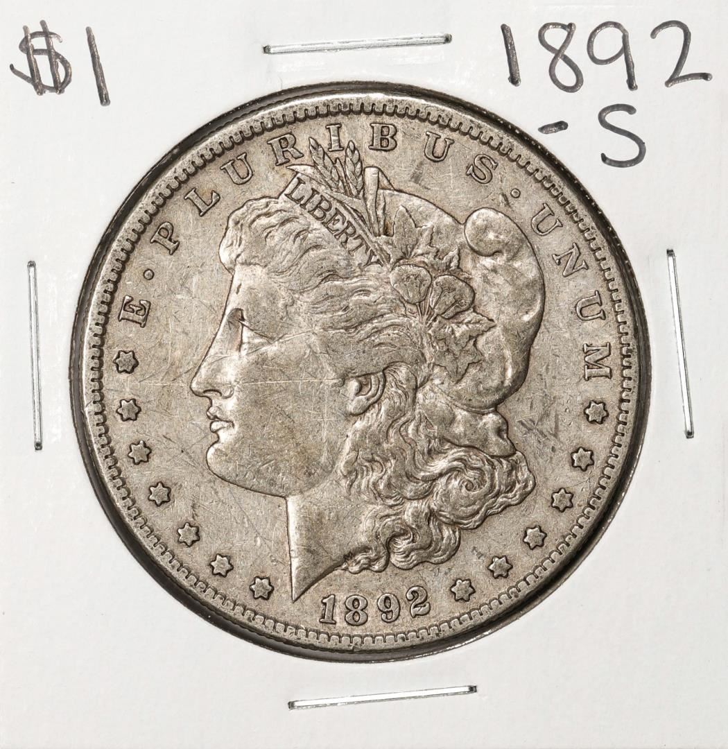 One 1892-S $1 Morgan Silver Dollar Coin.