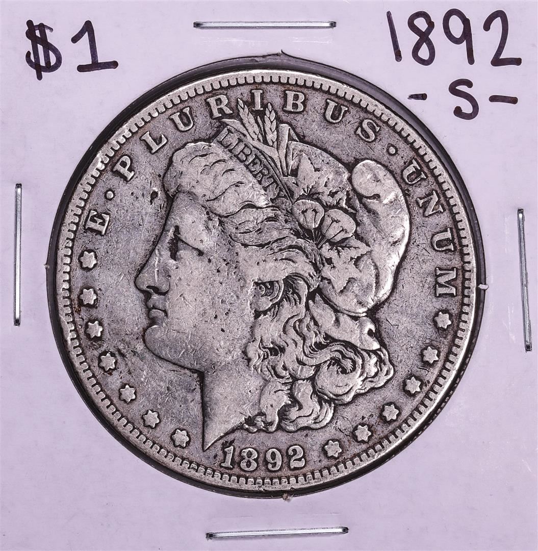 One 1892-S $1 Morgan Silver Dollar Coin.
