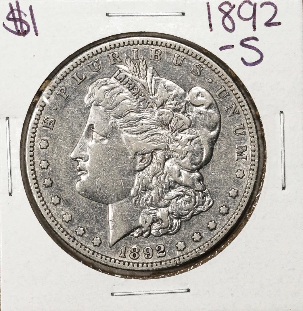 One 1892-S $1 Morgan Silver Dollar Coin.