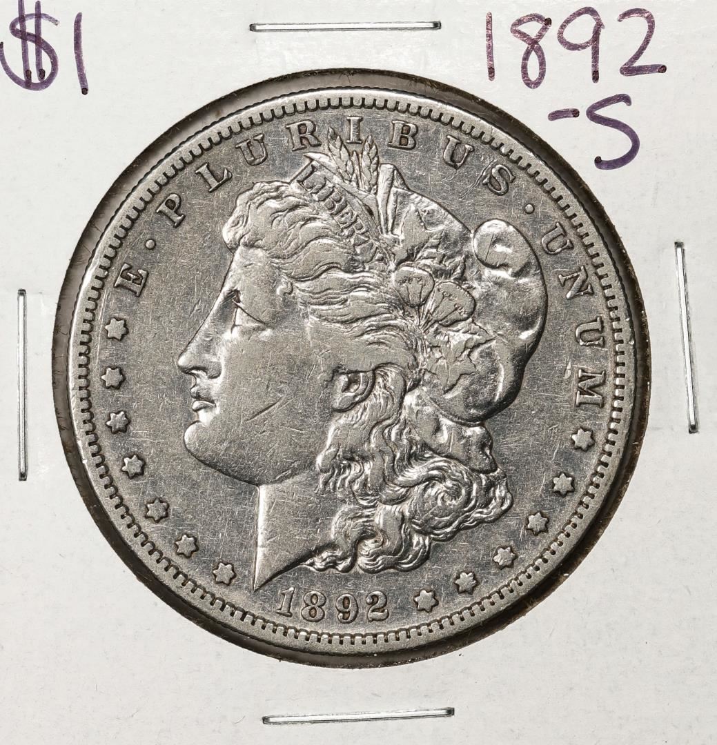One 1892-S $1 Morgan Silver Dollar Coin.