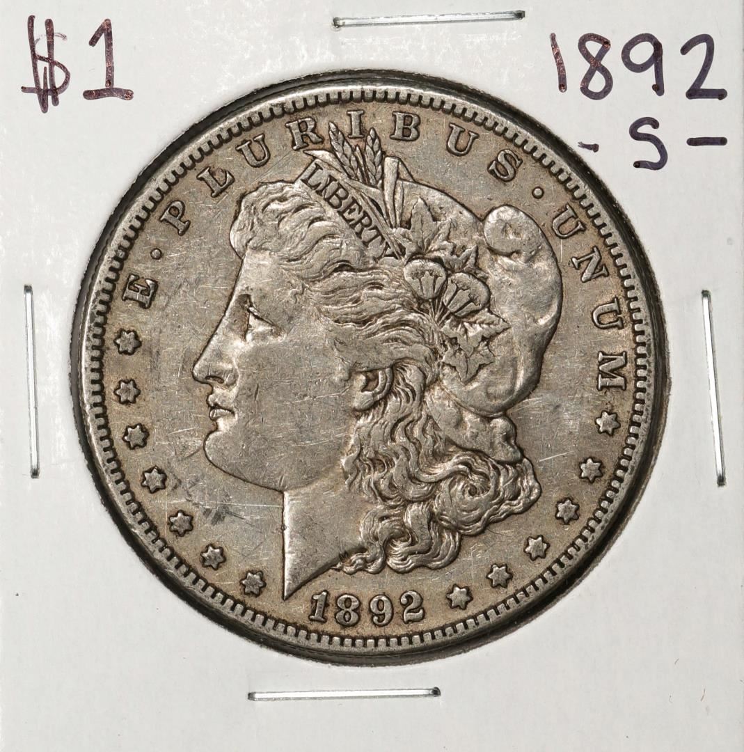 One 1892-S $1 Morgan Silver Dollar Coin.