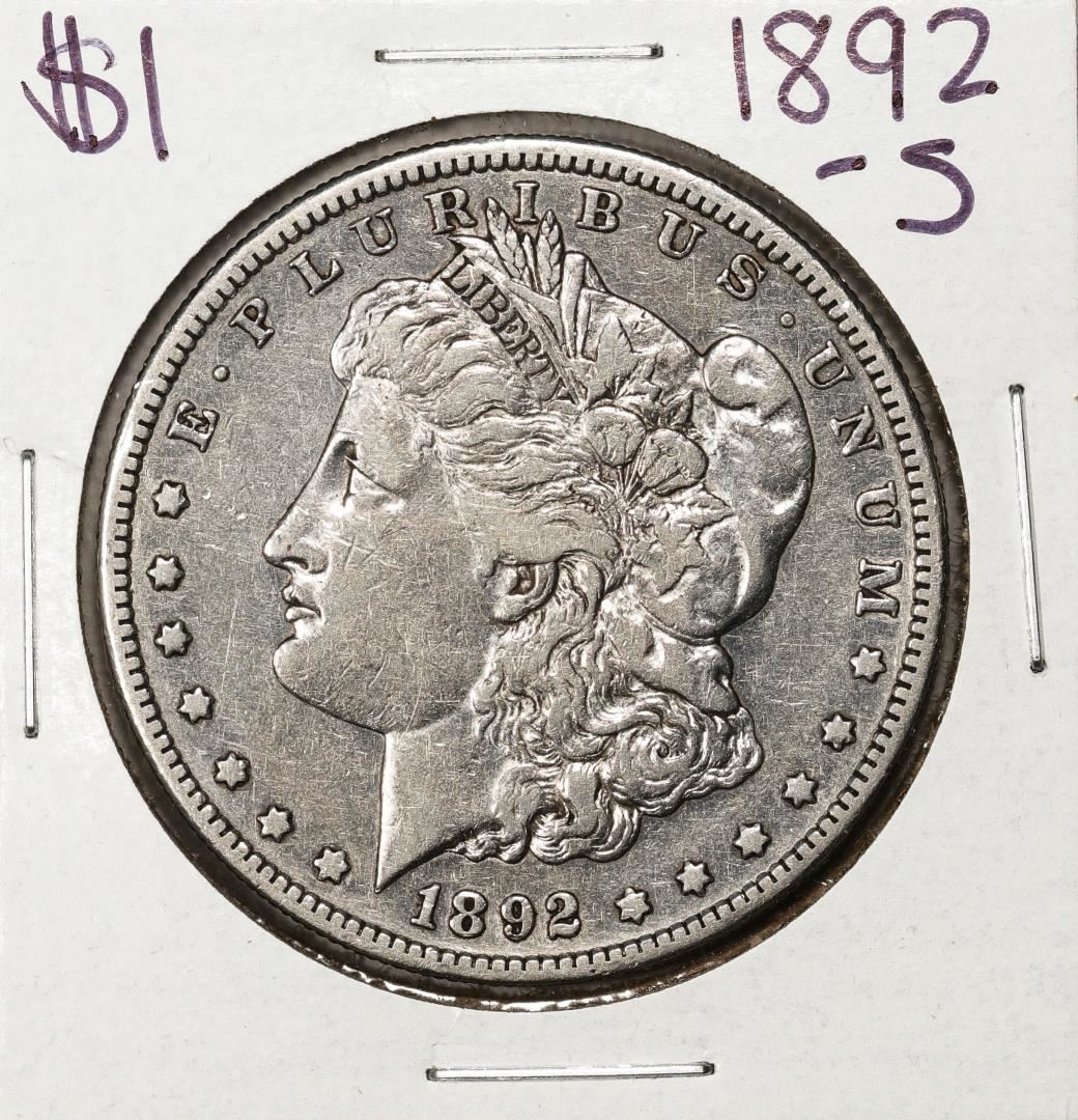 One 1892-S $1 Morgan Silver Dollar Coin.