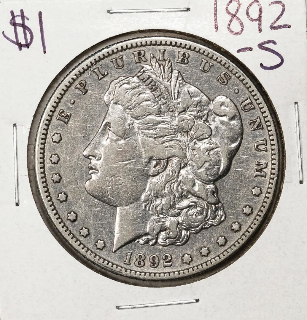 One 1892-S $1 Morgan Silver Dollar Coin.