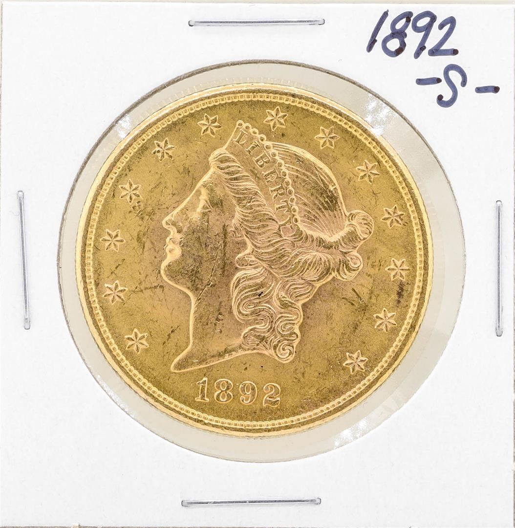 One 1892-S $20 Liberty Head Double Eagle Gold Coin.