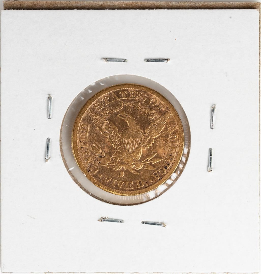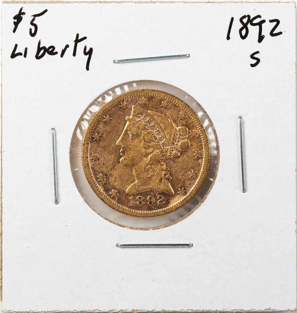 One 1892-S $5 Liberty Head Half Eagle Gold Coin.