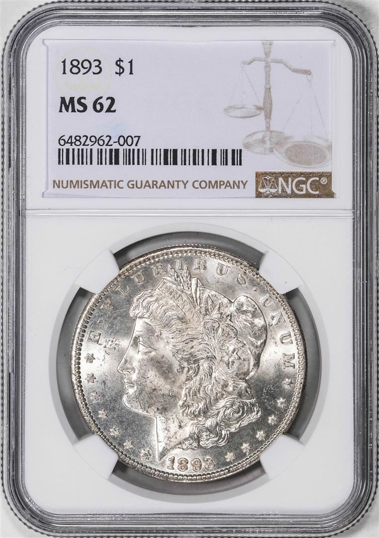 One 1893 $1 Morgan Silver Dollar Coin NGC MS62. NGC Certified.
