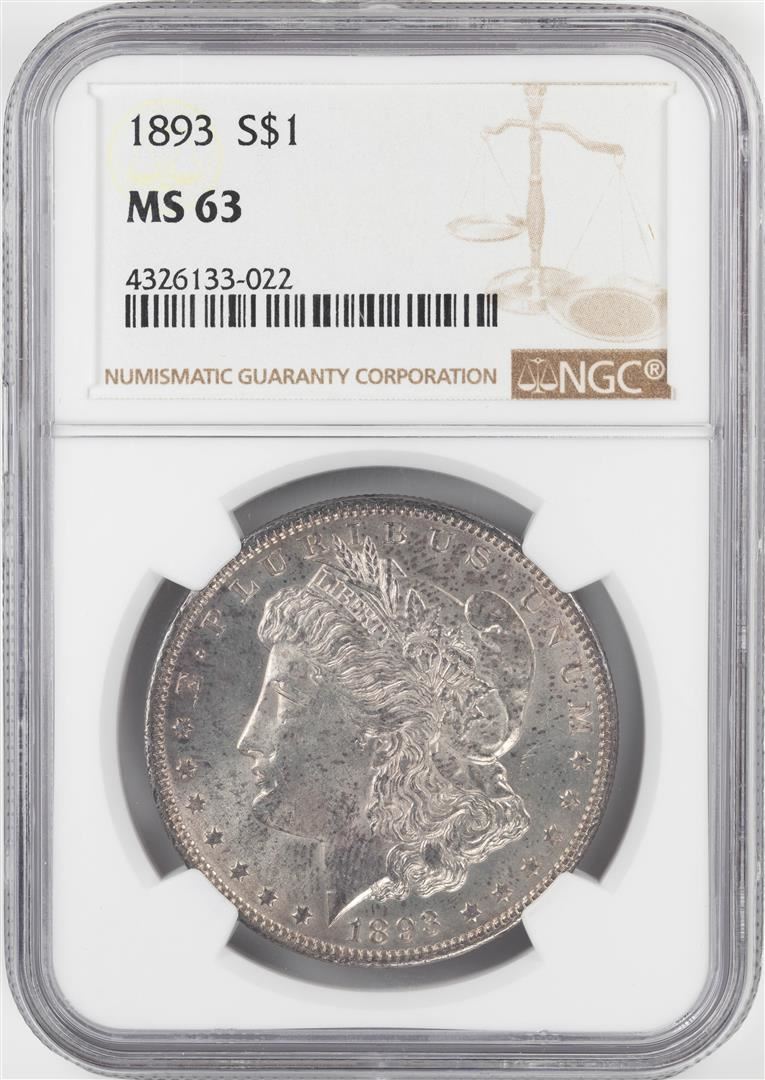 One 1893 $1 Morgan Silver Dollar Coin NGC MS63. NGC Certified.