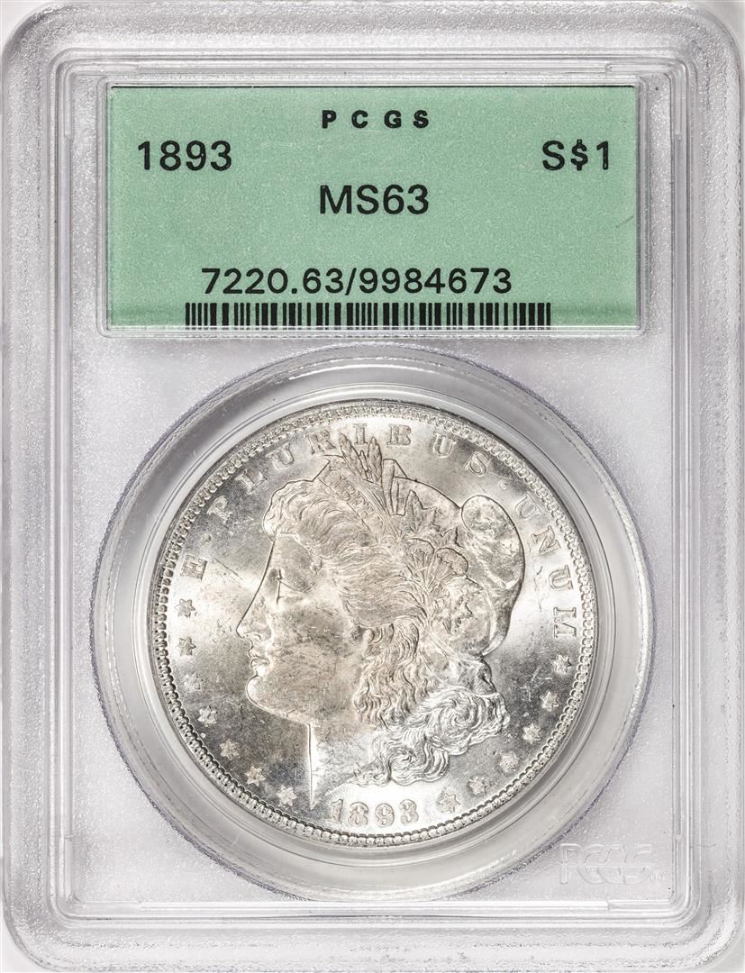 One 1893 $1 Morgan Silver Dollar Coin PCGS MS63 Old Green Holder. PCGS Graded.