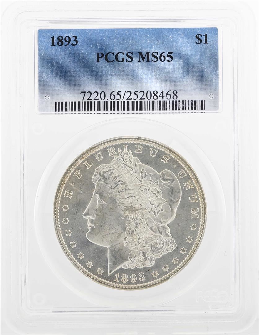 One 1893 $1 Morgan Silver Dollar Coin PCGS MS65. PCGS Graded.