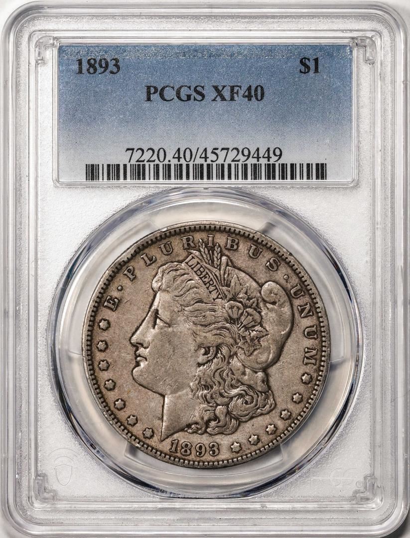 One 1893 $1 Morgan Silver Dollar Coin PCGS XF40. PCGS Graded.