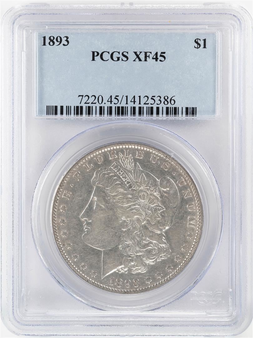 One 1893 $1 Morgan Silver Dollar Coin PCGS XF45. PCGS Graded.