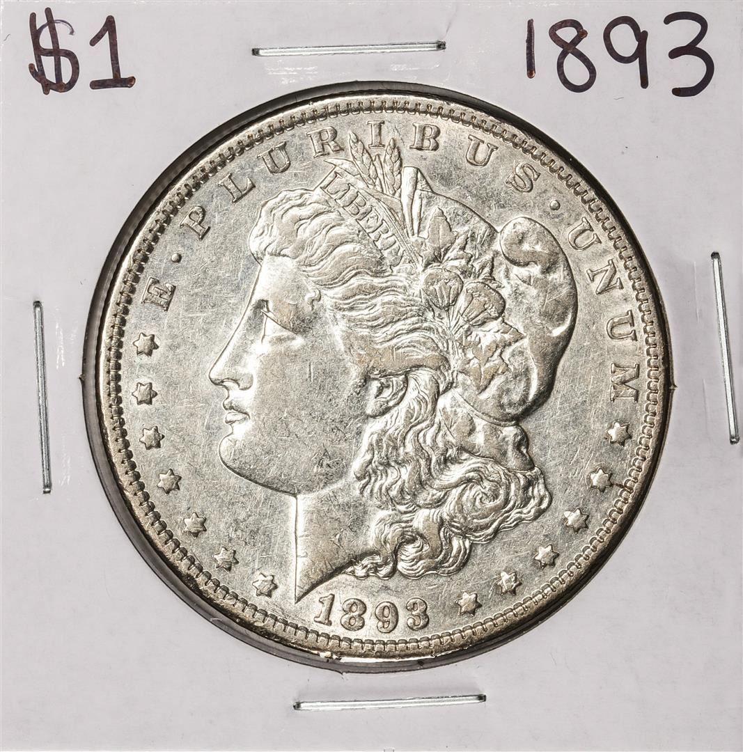 One 1893 $1 Morgan Silver Dollar Coin.